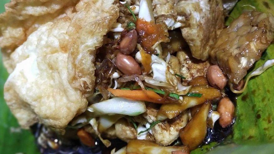 Warung Pecel Bu Sugeng Madiun menyuguhkan hidangan nasi pecel dengan beragam pilihan lauk.