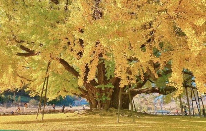 Pohon ginkgo di Bangye-ri yang sekuler merupakan monumen nasional Korea Selatan, seperti dikutip dari laman Oddity Central, Selasa (14/11/2023).