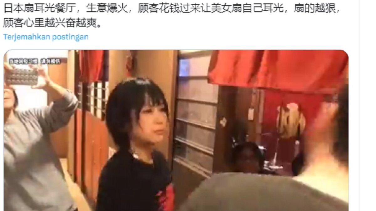 Akun @harry_shosta di platform X (dulu Twitter) membagikan klip perusahaan aneh ini, di mana pelanggan membayar hak istimewa untuk ditampar oleh karyawan wanita.