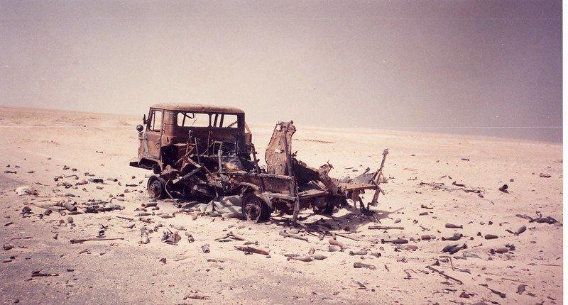 Bentangan jalan di Kuwait ini dikenal sebagai Highway 80 dan menjadi latar belakang satu serangan paling dahsyat selama Perang Teluk.