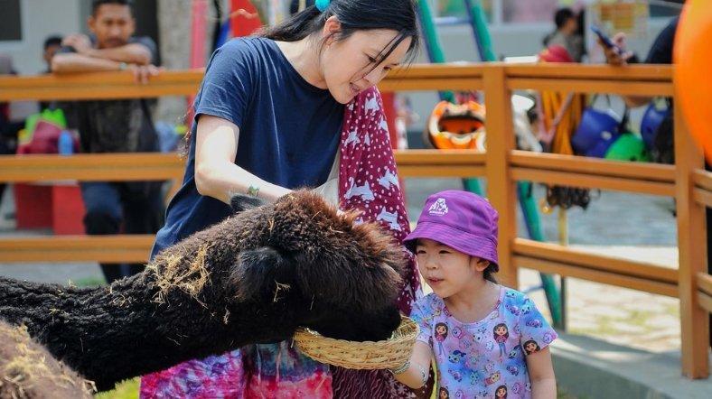 Suraloka Zoo memungkinkan traveler untuk memberi makan secara langsung hewan-hewan yang ada di sana.