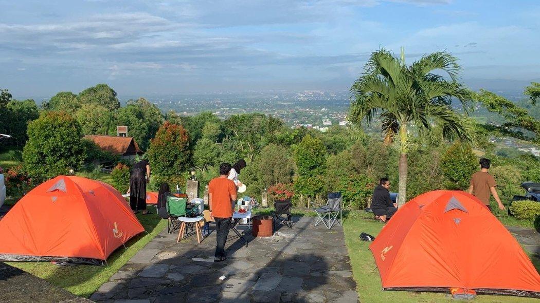 Watu Tapak Camp Hill menyajikan pemandangan kota Jogja dari ketinggian.