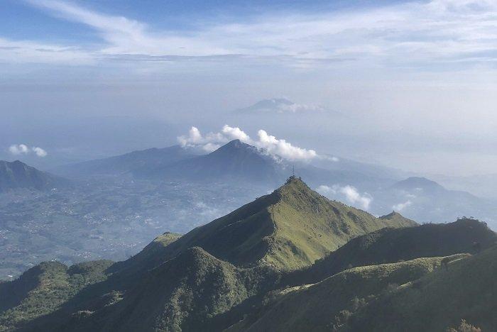 Ditambah lagi dengan perpaduan langit biru dan lautan awan, menciptakan lanskap yang begitu indah.