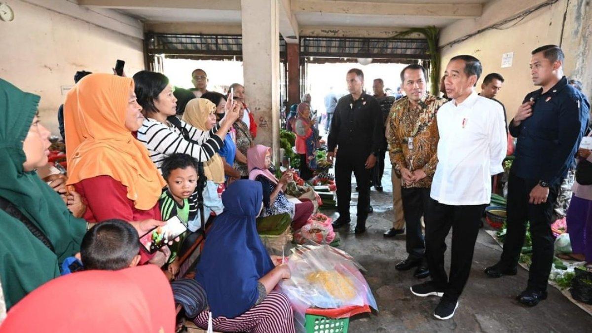 Presiden Jokowi kemudian blusukan dan menyapa para pedagang.