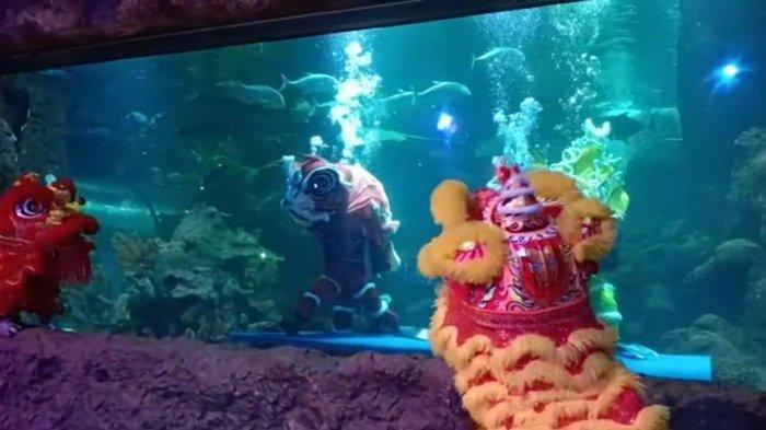 Bertajuk Underwater Dragon Show, pertunjukan barongsai diadakan dalam akuarium utama.