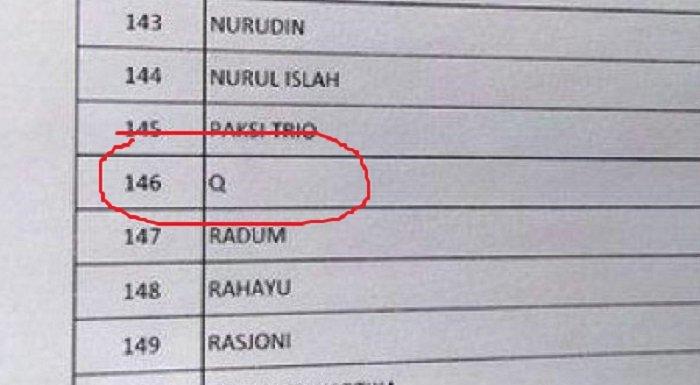 Artikel ini telah tayang di TribunJatim.com dengan judul Dikira Inisial, Wanita Pekalongan Viral Namanya Cuma 1 Huruf 'Q', Petugas PPS sampai Kebingungan