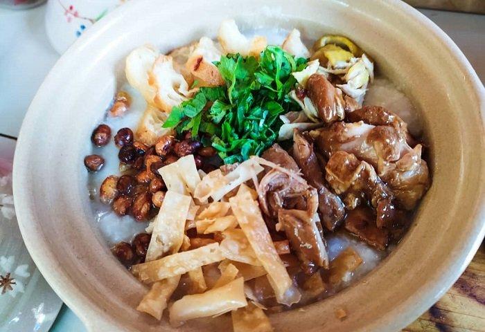 Bubur disajikan dalam clay pot yang sudah dibakar.