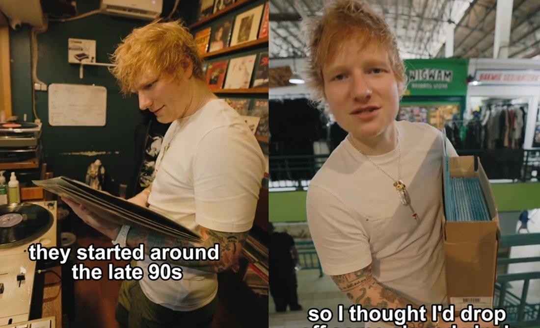 Dalam salah satu toko kaset, Ed Sheeran juga mendengarkan vinyl penyanyi Indonesia.