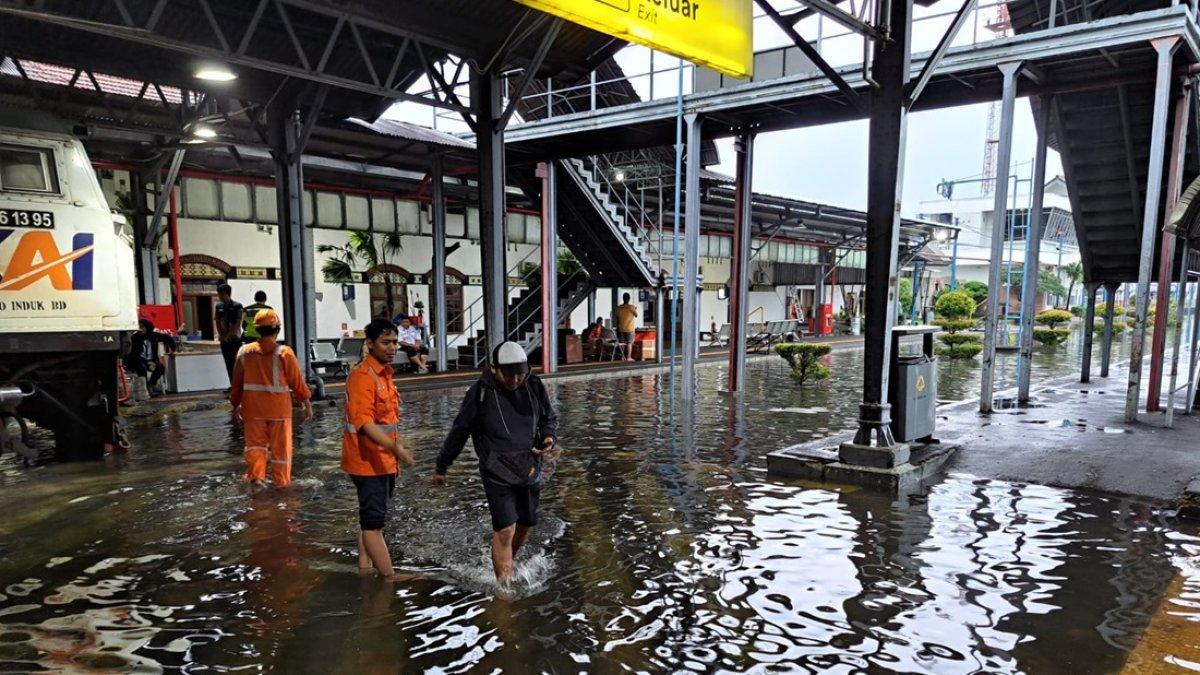Banjir ini merendam sejumlah titik Stasiun Tawang di Semarang, Jawa Tengah.