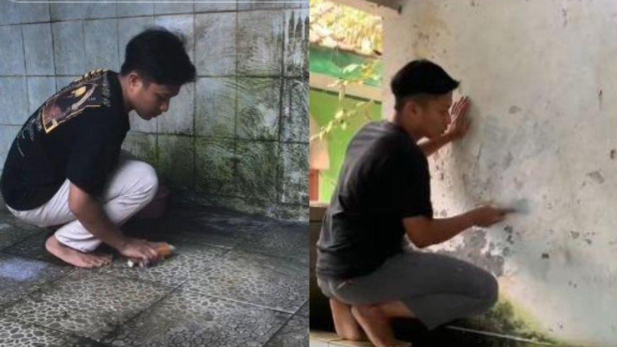 Satu dari sekian video yang viral, adalah ketika Cecep melakukan bersih-bersih seorang diri.
