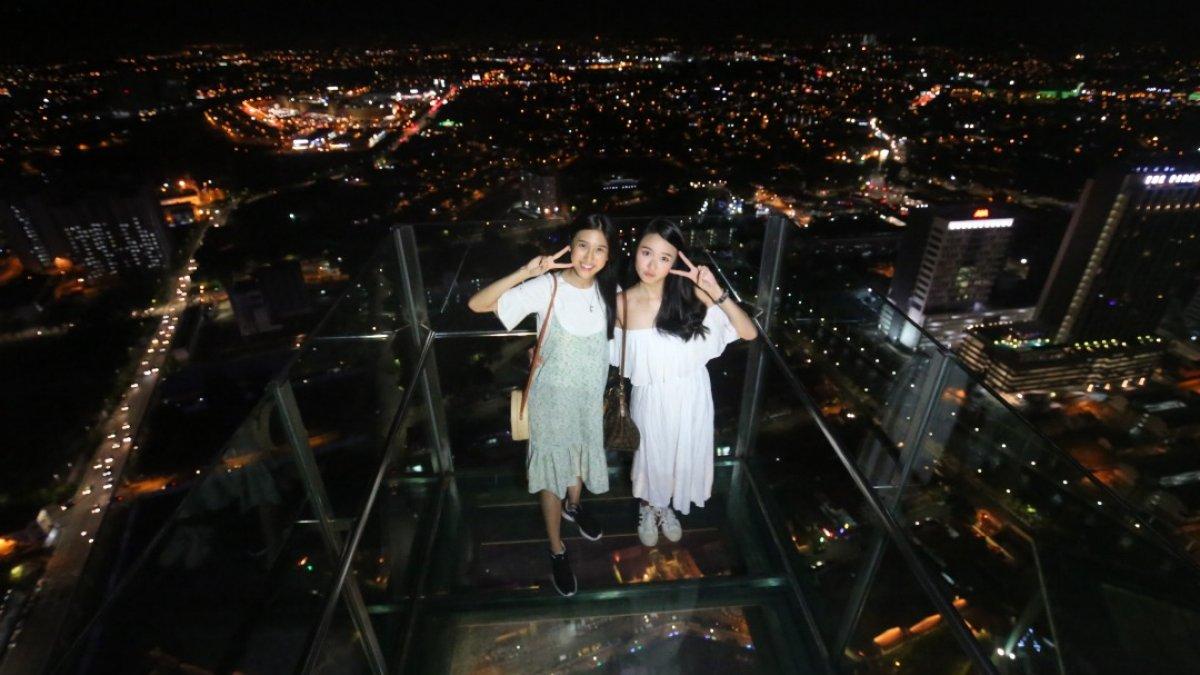Kamu akan berdiri di dalam kotak kaca dengan lantai dan pagar kaca tembus pandang untuk melihat panorama kota dan merasakan bagaimana rasanya “melayang” di udara dari lantai 43 gedung ini.
