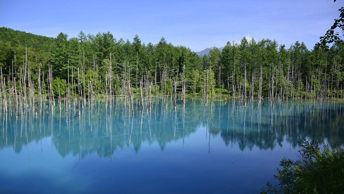 Awalnya dibangun sebagai bendungan di Sungai Biei, kolam buatan ini telah berubah warna menjadi biru misterius seiring berjalannya waktu.