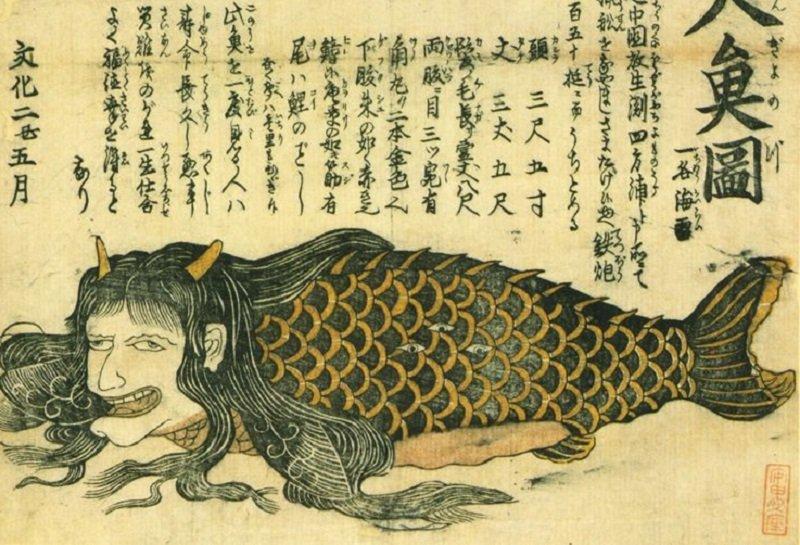 Dalam kronik Hojo Kudai-ki tahun 1331, ada pembicaraan tentang apa yang paling tepat digambarkan sebagai “putri duyung terbalik”: makhluk humanoid berkepala ikan.