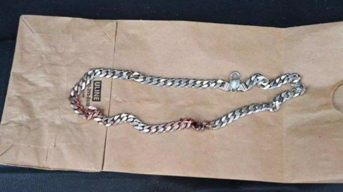 Meskipun kalung rantai itu hanya berukuran lebar 10 milimeter, namun berhasil memblokir peluru yang hampir masuk ke lehernya.