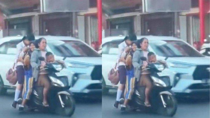 Dalam video yang beredar, tampak ibu-ibu itu melintas di jalan raya berboncengan enam yang mayoritas penumpangnya merupakan pelajar.