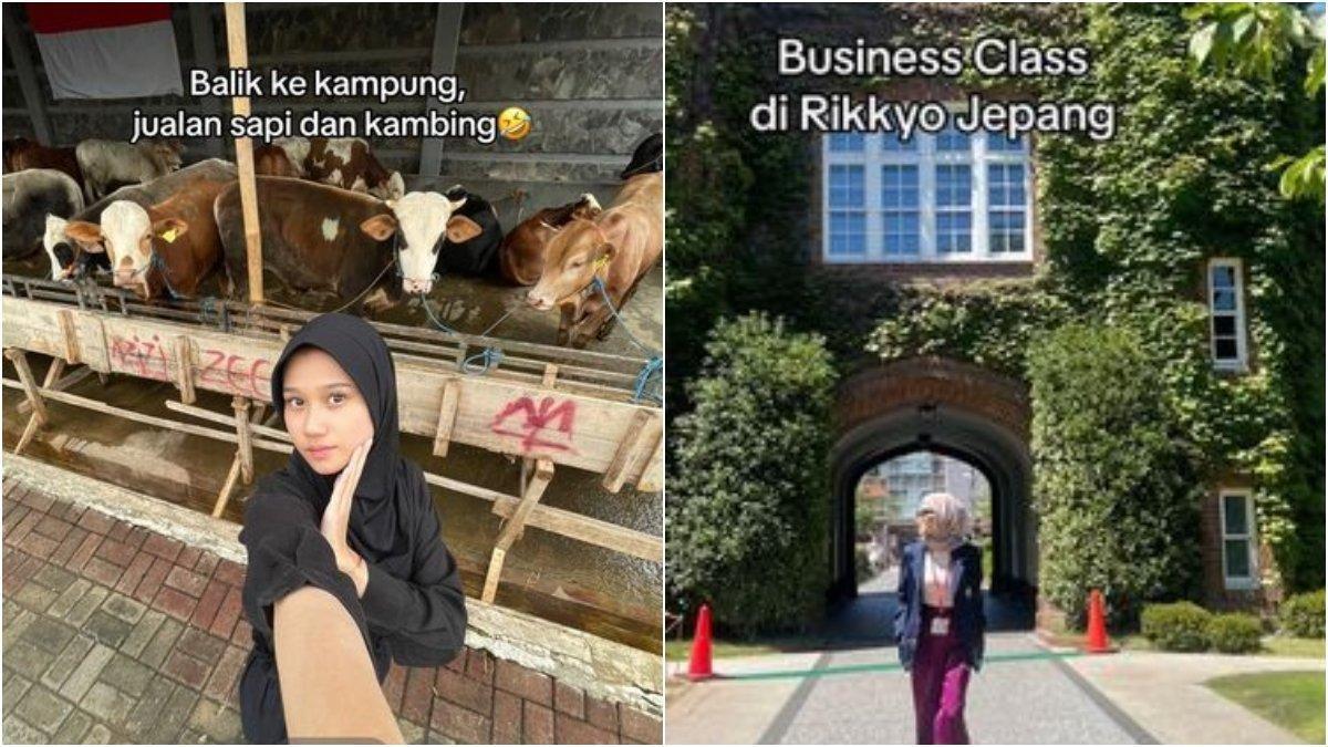 "S1 Manajemen, S2 Manajemen Bisnis, Business Class di Rikkyo Jepang. Balik kampung, jualan sapi dan kambing buat qurban pengiriman seluruh Jawa, dijamin termurah," tulis akun TikTok @ownerarealama.