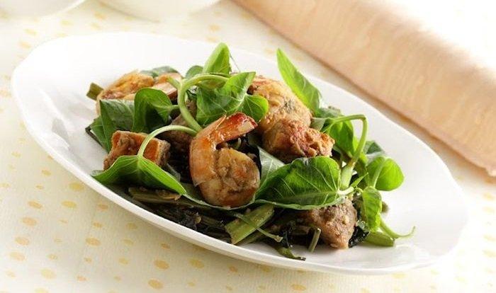 - Siram ke atas kangkung. Taburi dengan rebon.