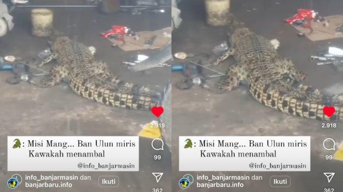 Dalam video yang diunggah akun Instagram @info_banjarmasin pada Jumat (19/7/2024), terlihat seekor buaya masuk bengkel secara tiba-tiba.