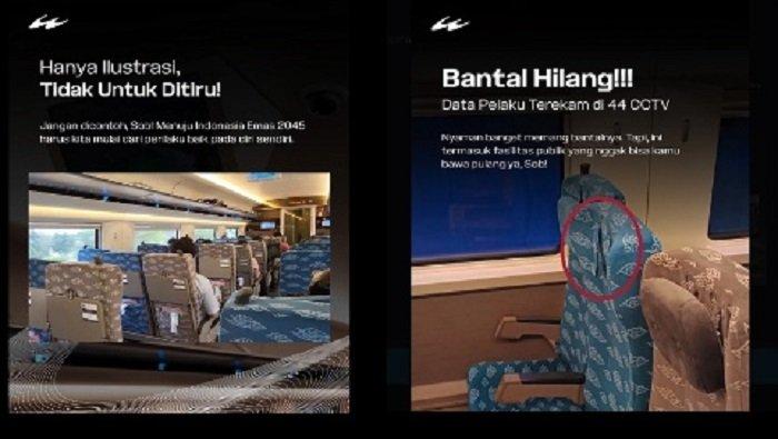 Unggahan foto memperlihatkan kondisi sebuah kursi Whoosh usai bantal dicuri.
