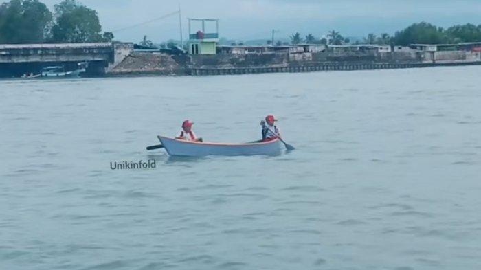 Viral sebuah video Perlihatkan 2 orang bocah sekolah dasar pergi ke sekolah menggunakan perahu dayung.