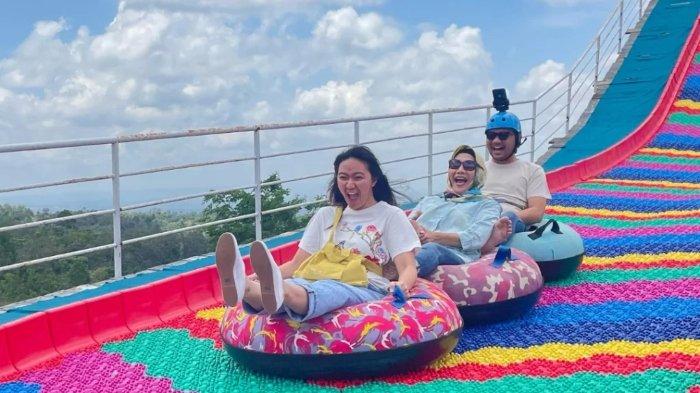 Ada rainbow slide, wahana seluncuran terpanjang di Jawa Timur yang jadi favorit pengunjung.