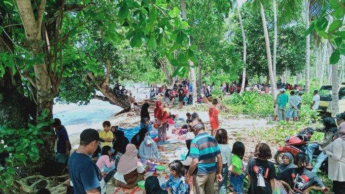 Salah satu pengunjung Taman Taba (40) menceritakan sejarah pantai Sagolo.