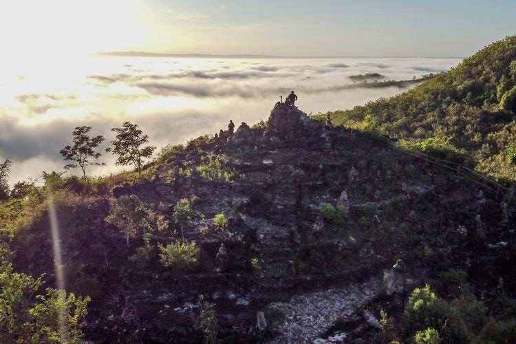 Jika berkunjung di pagi hari, kamu akan melihat terbitnya matahari yang indah dengan pemandangan Gunung Api Purba Nglanggeran serta Gunung Lawu.
