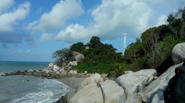 Wisata alam perpaduan tampilan bukit dan pantai ini berjarak 120 km dari pusat kota Pangkalpinang, sekitar 2,5 jam waktu tempuh.