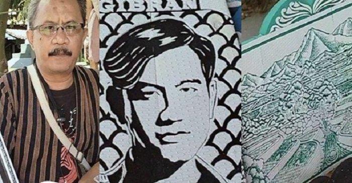 Tangannya yang 'ajaib' pun bisa mengukir wajah Gibran Rakabuming di sandal jepit.