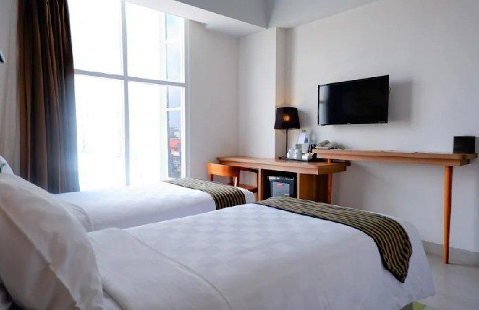 Hotel ini punya banyak fasilitas, seperti halnya 2 kasur single, wifi, shower, perlengkapan mandi, AC, air mineral kemasan, televisi dan masih banyak lagi.