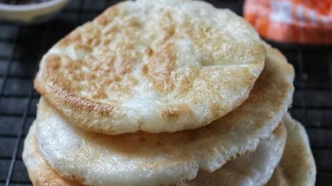 Dibuat dengan campuran tepung, garam dan air kemudian dibentuk bulat pipih tipis, lalu dikeringkan.
