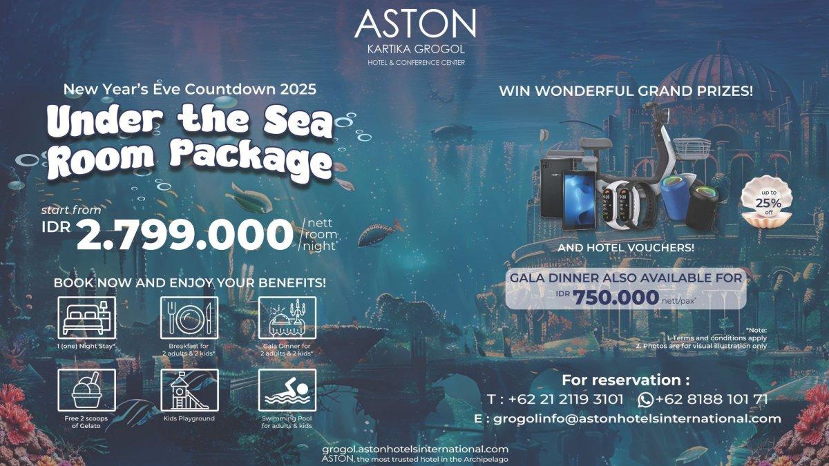 Menyajikan sebuah pengalaman unik yang akan membawa Anda seolah-olah berada di bawah lautan. Dari dekorasi laut yang menakjubkan, hingga hiburan yang memukau, ASTON Kartika Grogol menciptakan suasana yang magis untuk menyambut Tahun Baru.