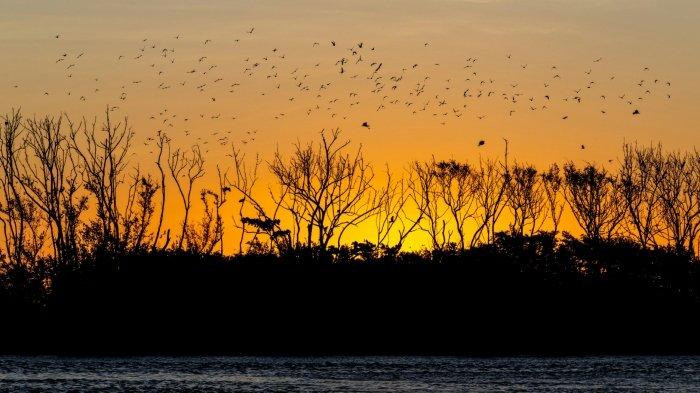 Namun, yang paling menonjol dari pulau ini adalah ribuan kelelawar yang terbang keluar dari pohon-pohon besar di senja hari.