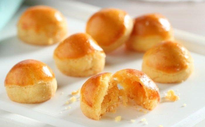 Nastar biasanya memiliki bentuk bulat dengan isian selai nanas di dalamnya.