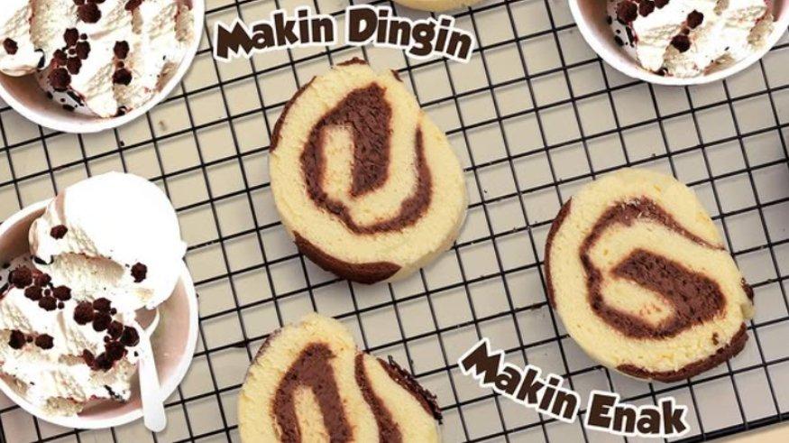 Seperti namanya, Moo-Moo Roll menghadirkan bolu gulung unik dengan hiasan totol sapi.