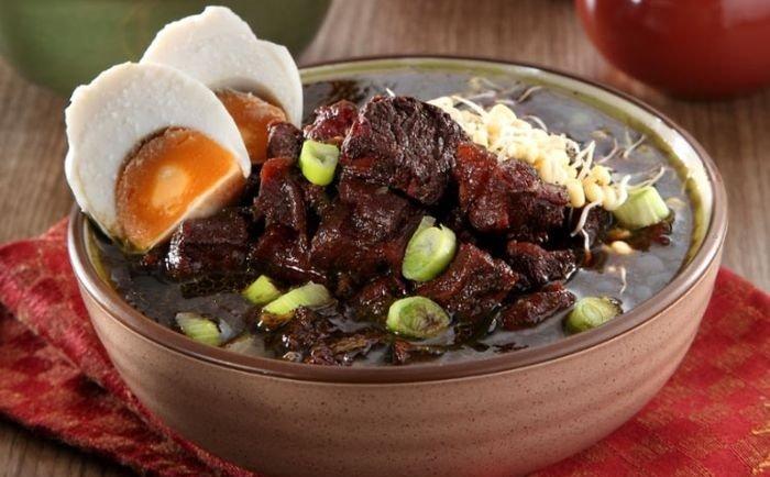 Dimasak sedemikian rupa membuat rawon memiliki kuah yang berkaldu lezat dengan daging empuk.