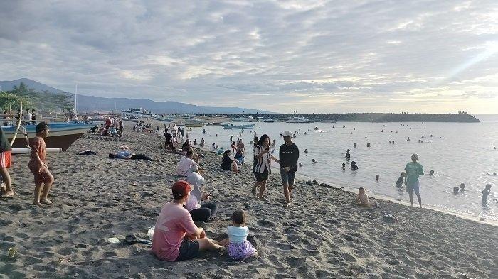 Banyak pengunjung yang datang untuk sekadar bersantai, berenang, hingga menikmati kuliner pinggir pantai.