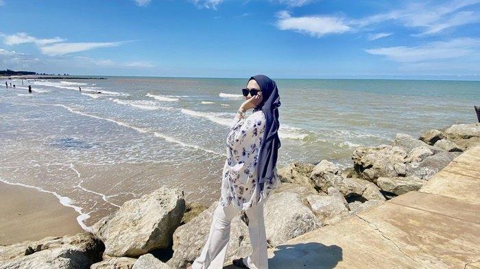 Pantai identik dengan air dan pasir sehingga pengunjung wajib berfoto di bibir pantai. Selain ungu merasakan kesehatan air laut dan sensasi menginjak pasir, ini juga membuat foto Anda jadi estetik.
