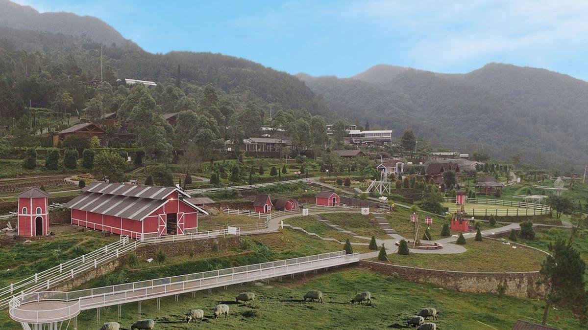 Pengunjung bisa berinteraksi dengan hewan ternak, memberi makan kuda, domba, atau sapi, serta berfoto dengan latar bangunan bergaya ranch.