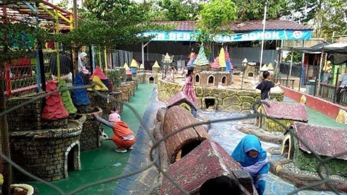 Di taman tersebut, anak-anak dapat bermain sambil belajar mengenal lingkungan sekitarnya.