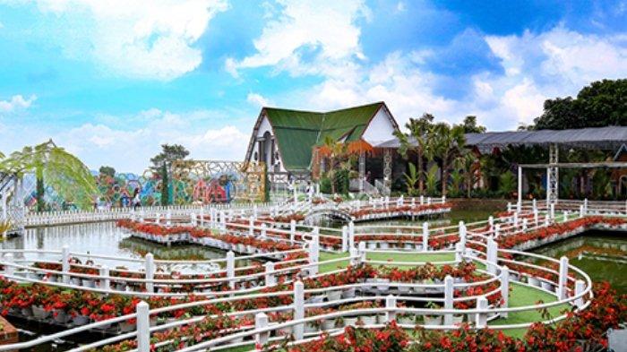 Jelajahi taman bunga penuh warna dan spot foto instagramable dengan latar pegunungan.