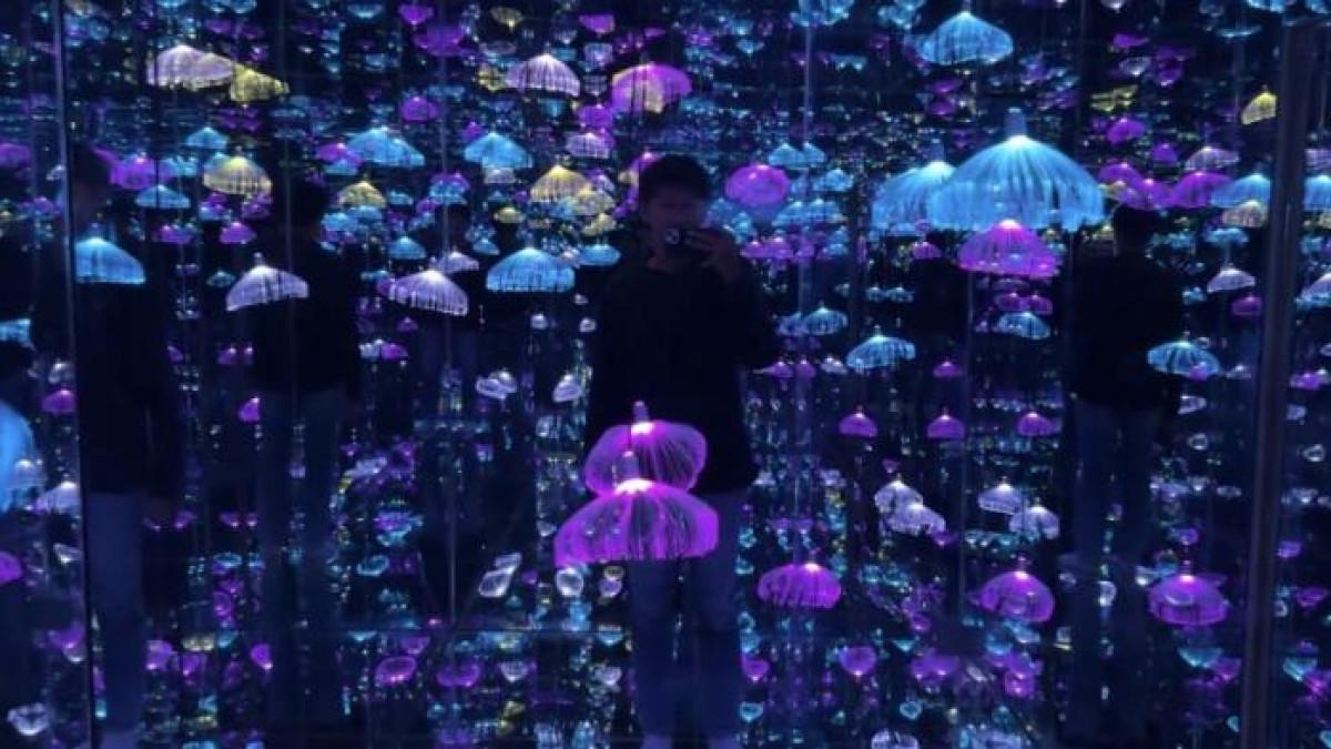 Sejak langkah pertama memasuki ruangan, pengunjung langsung disambut pantulan cahaya berlapis-lapis. Sensasinya seakan tenggelam di dunia ubur-ubur.