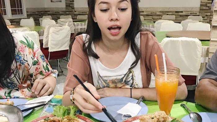 Memiliki paras cantik dan tubuh langsing, siapa sangka perempuan berdarah campuran Jepang ini sangat hobi makan.