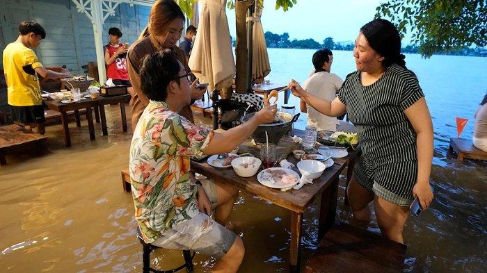 Restoran Kebanjiran di Thailand Ini Malah Ramai, Tamu Tetap Asyik Makan dengan Kaki Terendam