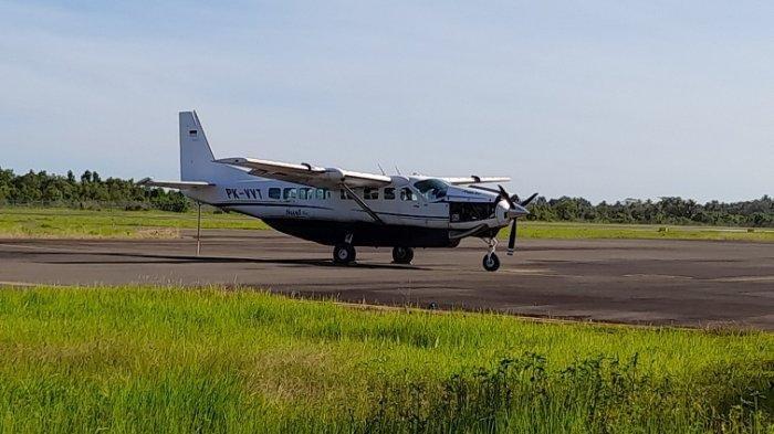 Akibat banjir yang melanda Kabupaten Mamuju, Sulawesi Barat, penerbangan terpaksa ditunda karena landasan pacu tak luput dari banjir.