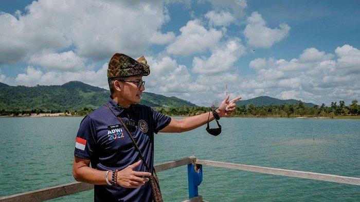 Menparekraf Sandiaga Uno mengapresiasi kreativitas masyarakat Desa Wisata Perlang dalam memanfaatkan bekas galian tambang timah menjadi desa wisata.