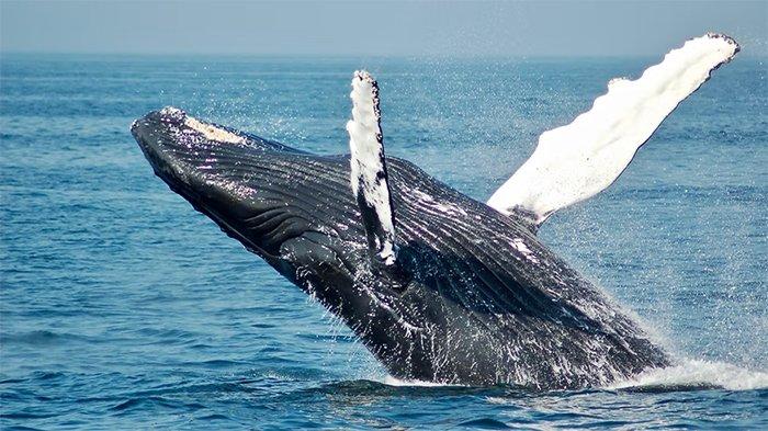 Sepasang ayah dan anak yang tengah memancing berhasil merekam momen menakjubkan saat seekor ikan paus bungkuk muncul tepat di dekat kapalnya.