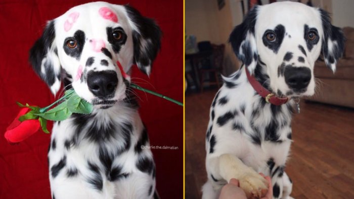 Saat diadopsi, tubuh anjing benar-benar berwarna putih dan belum terlihat totol-totol hitam yang umum ada pada anjing jenis Dalmatian.