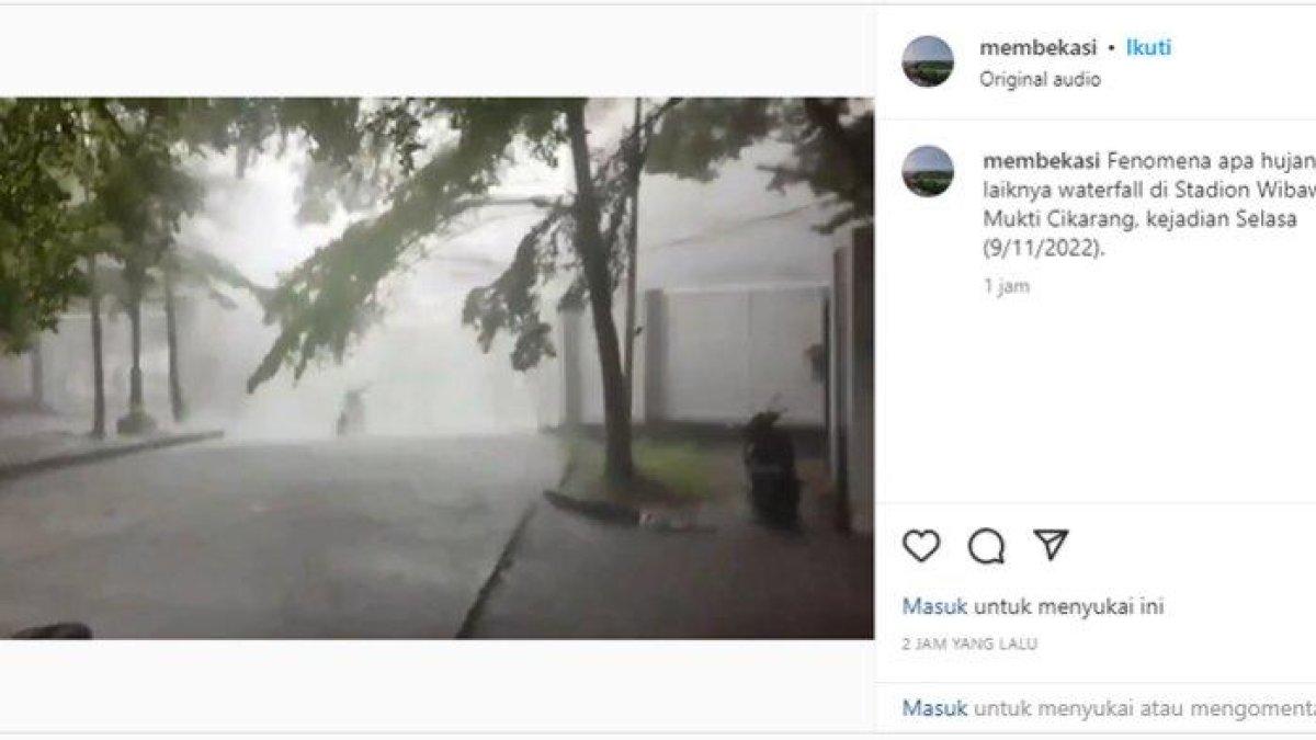 Video viral merekam hujan deras turun mirip air terjun terjadi Cikarang Timur, Kabupaten Bekasi.