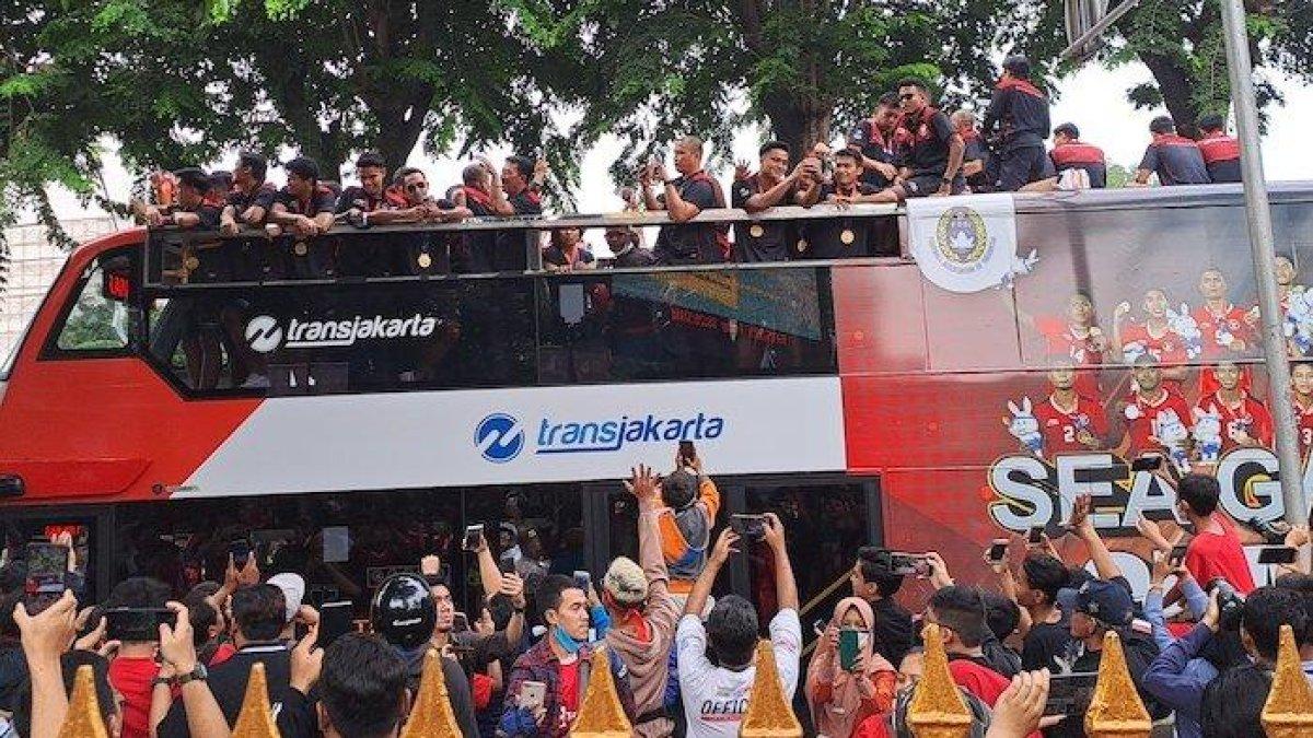 Driver ojol kegirangan mendapat tanda tangan kapten Timnas U22 Indonesia Rizky Ridho di jaketnya.